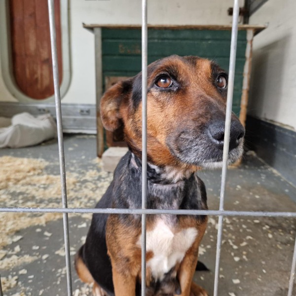 Mangó alig pár napos kölykeivel érkezett hozzánk Kisvárdáról 2025 decemberében, az Ugatlak Alapítványtól vettük át őket. Mangót előző "gazdája" kikötve tartotta, a nyakára hurkolt szoros zsinór pedig olyan mélyen vágódott bele a szerencsétlen kutya nyakába, hogy csak műtéttel lehetett eltávolítani... A sebei azóta begyógyultak, és Mangó szemében a félelmet felváltotta a bizalom. Kölykeiről példásan gondoskodik, nagyon jó mama, és biztosak vagyunk benne, hogy leendő gazdájának is csodás társa lesz majd. Szeretetéhes, az ember közelségét igénylő, nagyon kedves kutya.